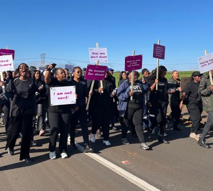 Pioneers Stand and Walk in Support of 16 Days of Activism for No Violence Against Women, Children, and Femicide