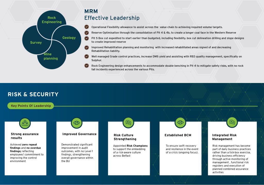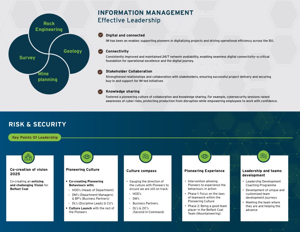 It was not all doom and gloom. We hit many extremely positive milestones and had celebratory moments along the way. Being awarded at the SAIMM CoalSafe Awards for Best Improved Safety Performance is testament to this. Congratulations to each of you, Pioneers, this is all your hard work!